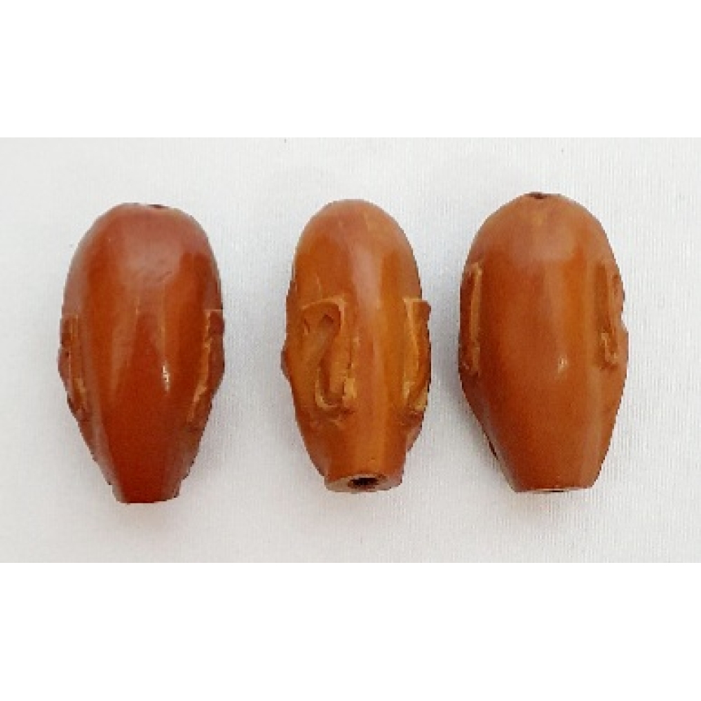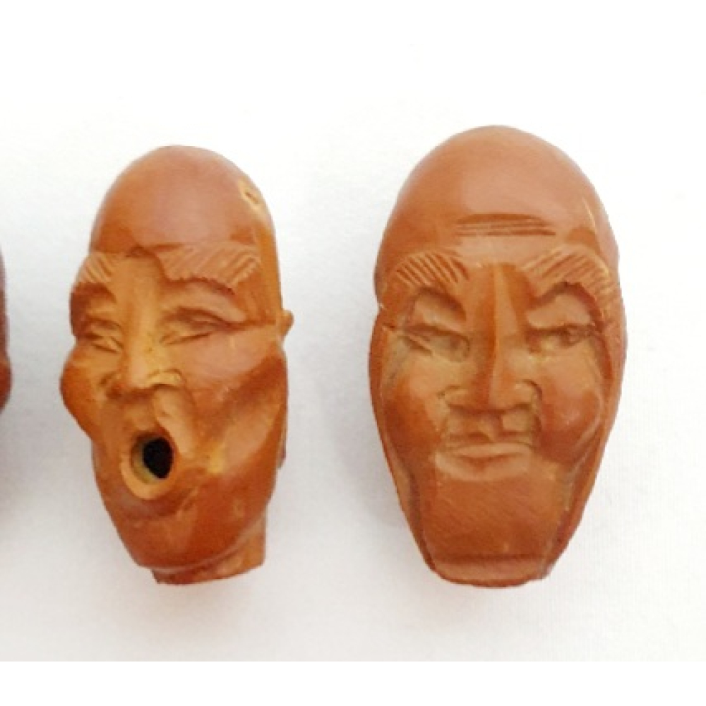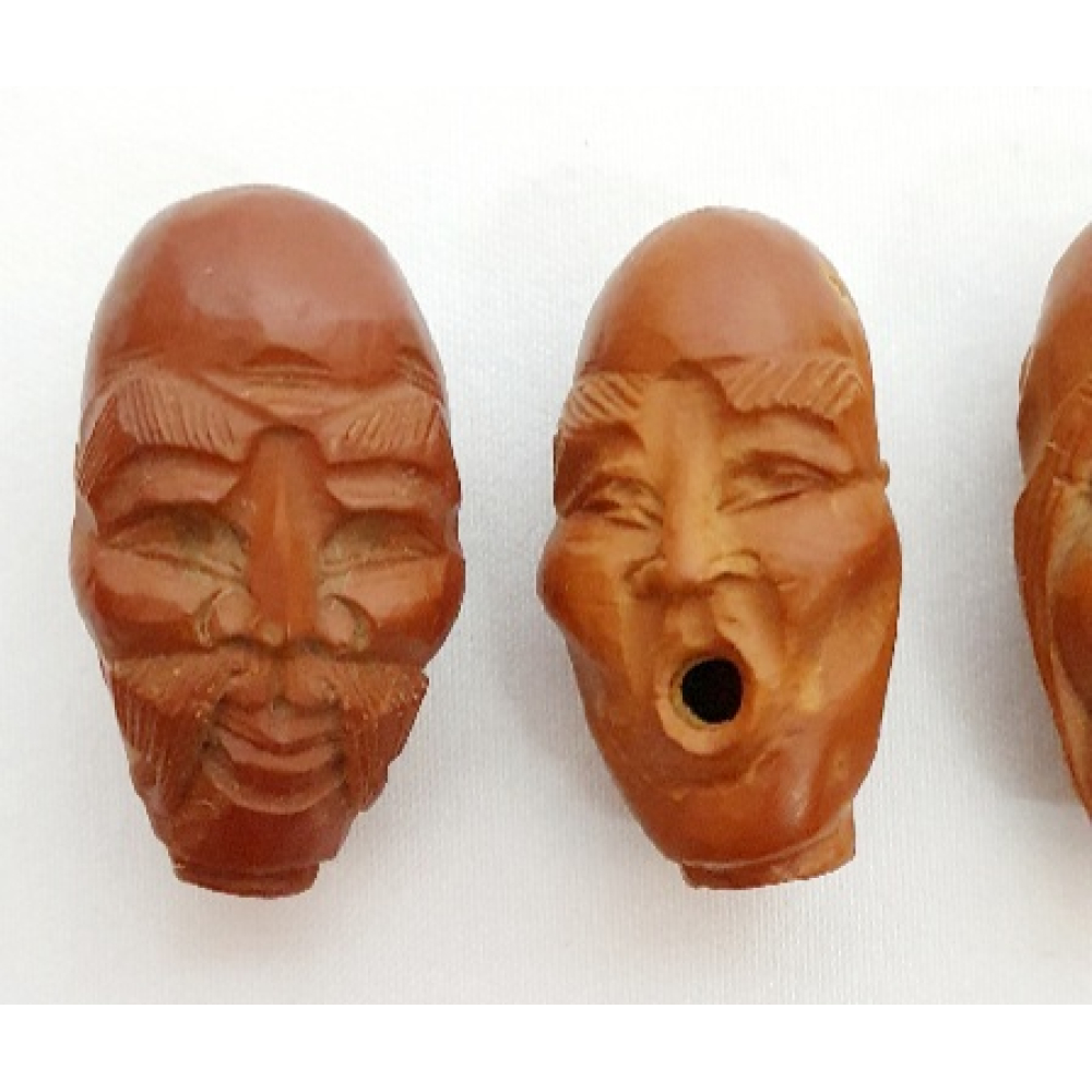 3 Chinese gesneden Olive Hediao Pit Nut kralen, Lohan Arhat Hoofd kralen