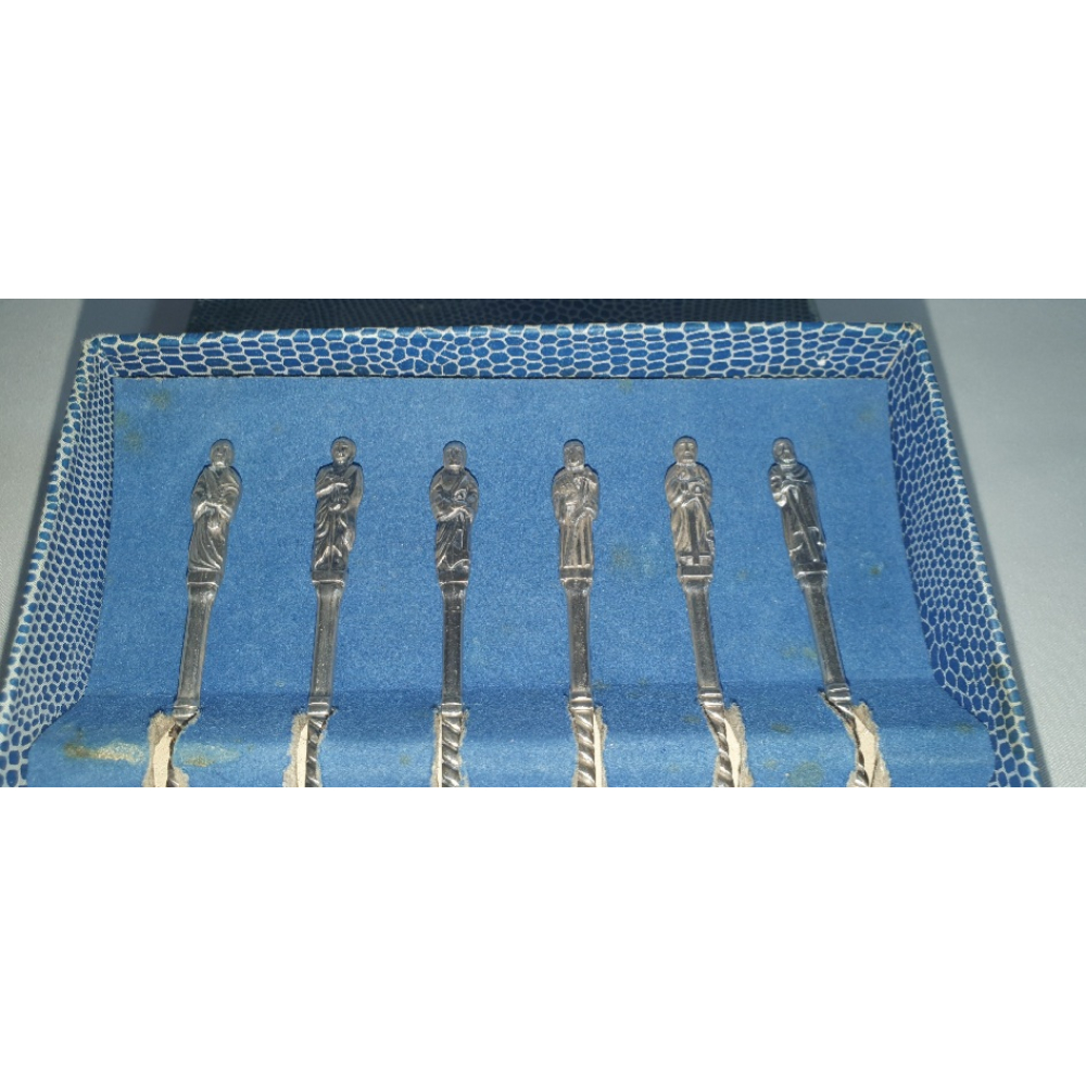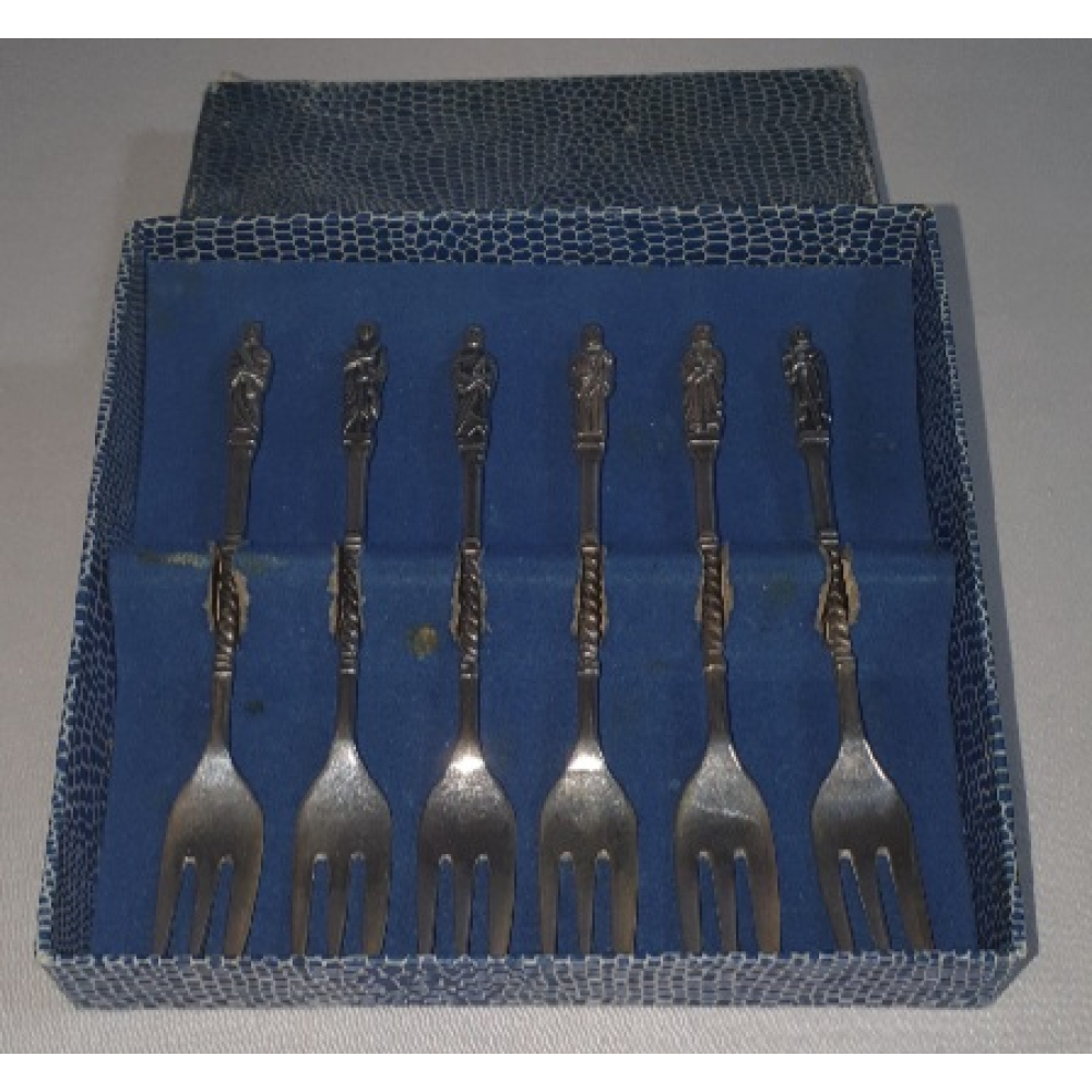 6 Verzilverde Apostel gebaksvorkjes in originele doos