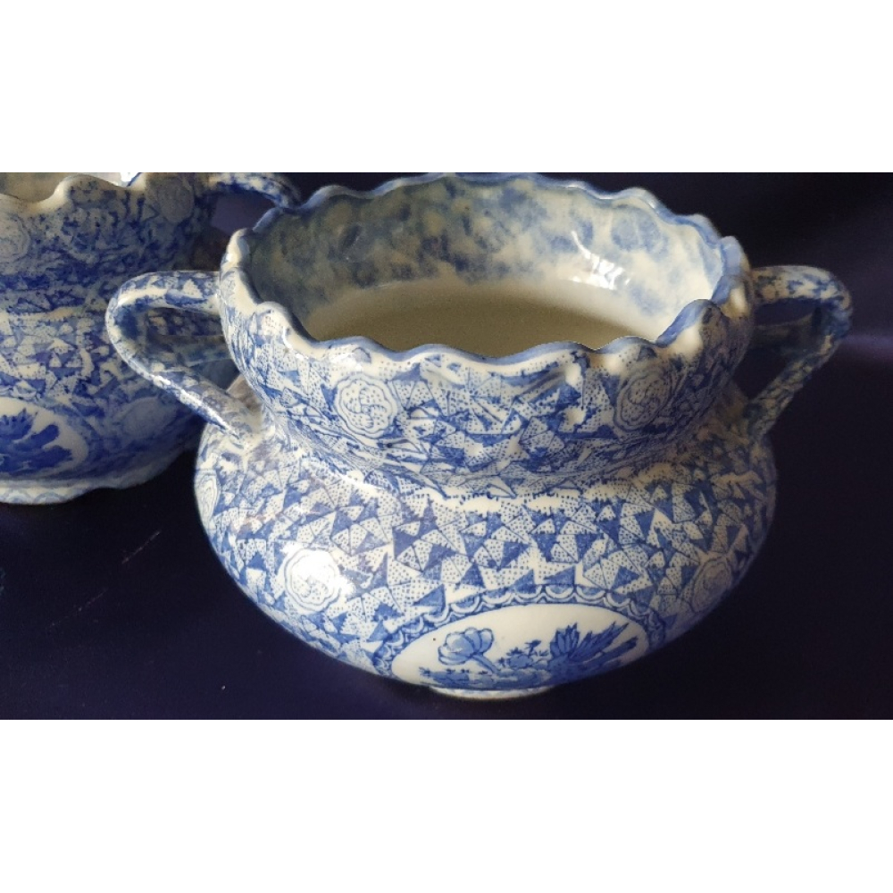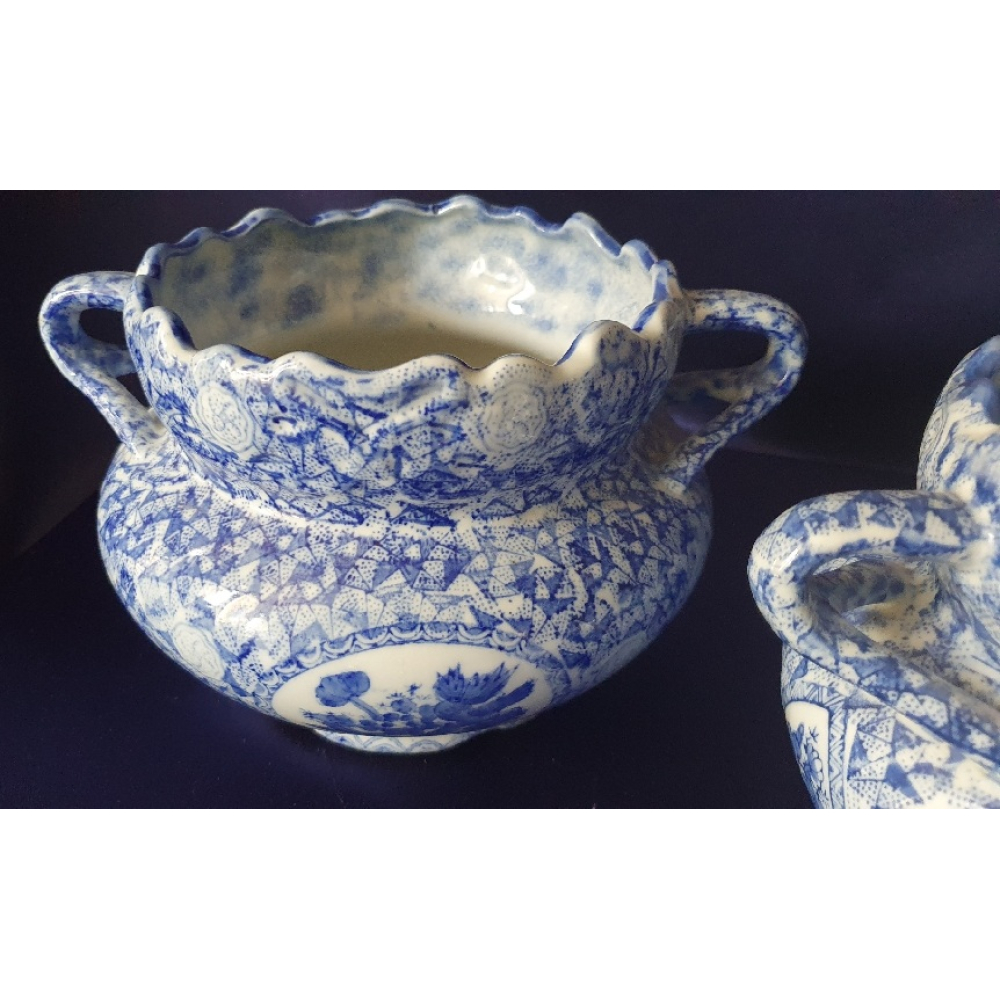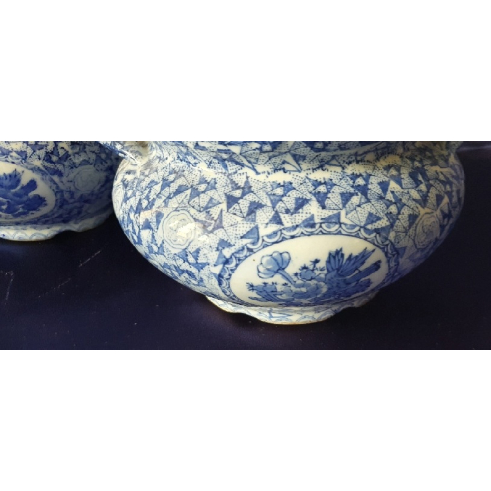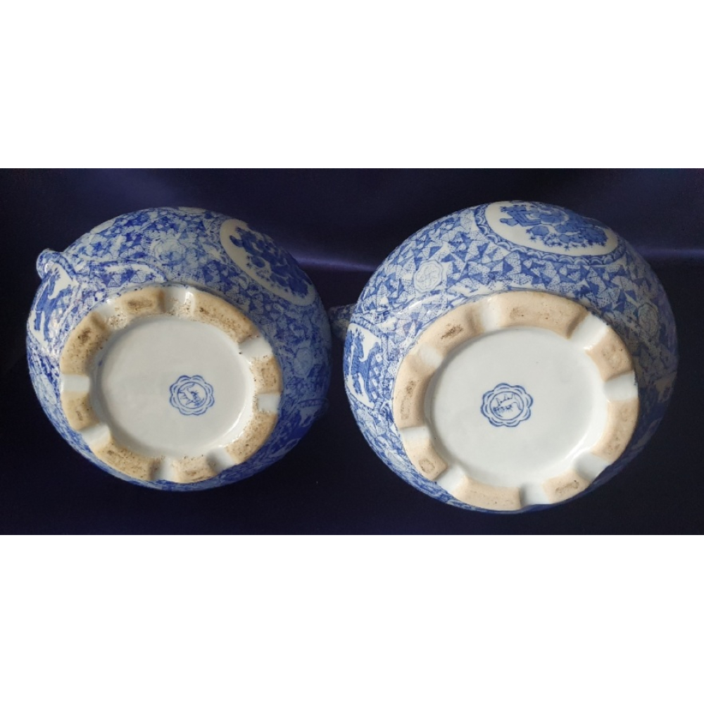 Blauw witte plantenpotten, gemerkt