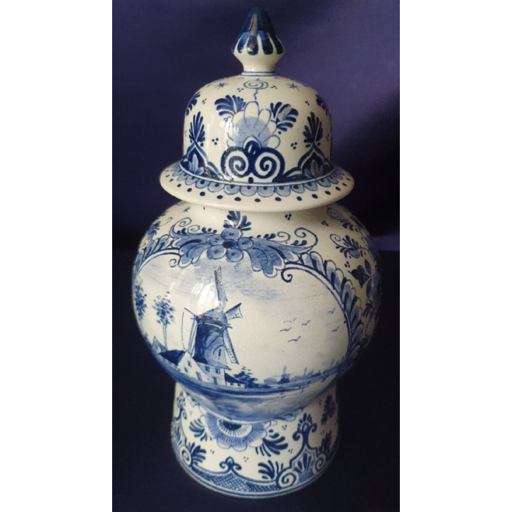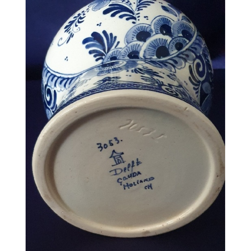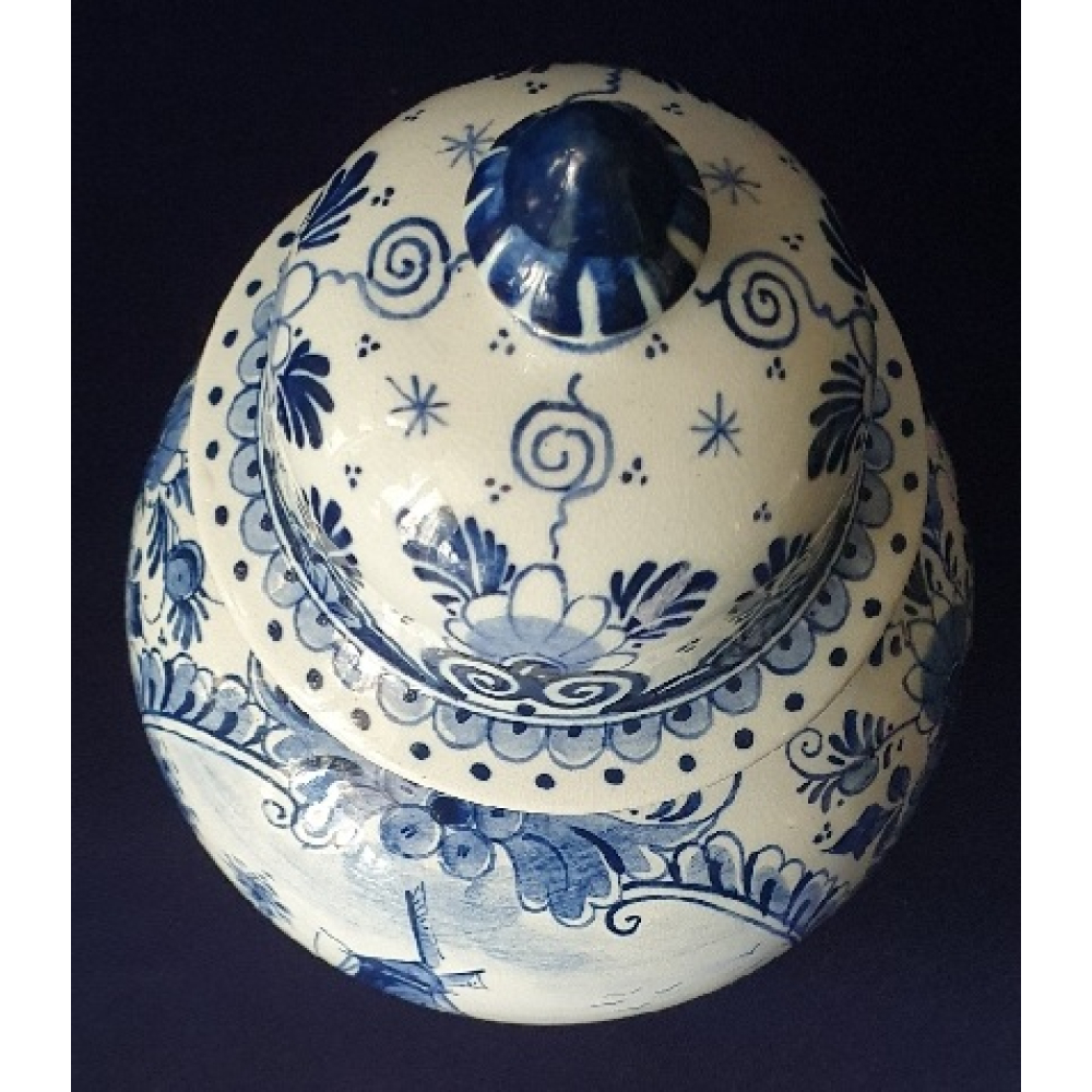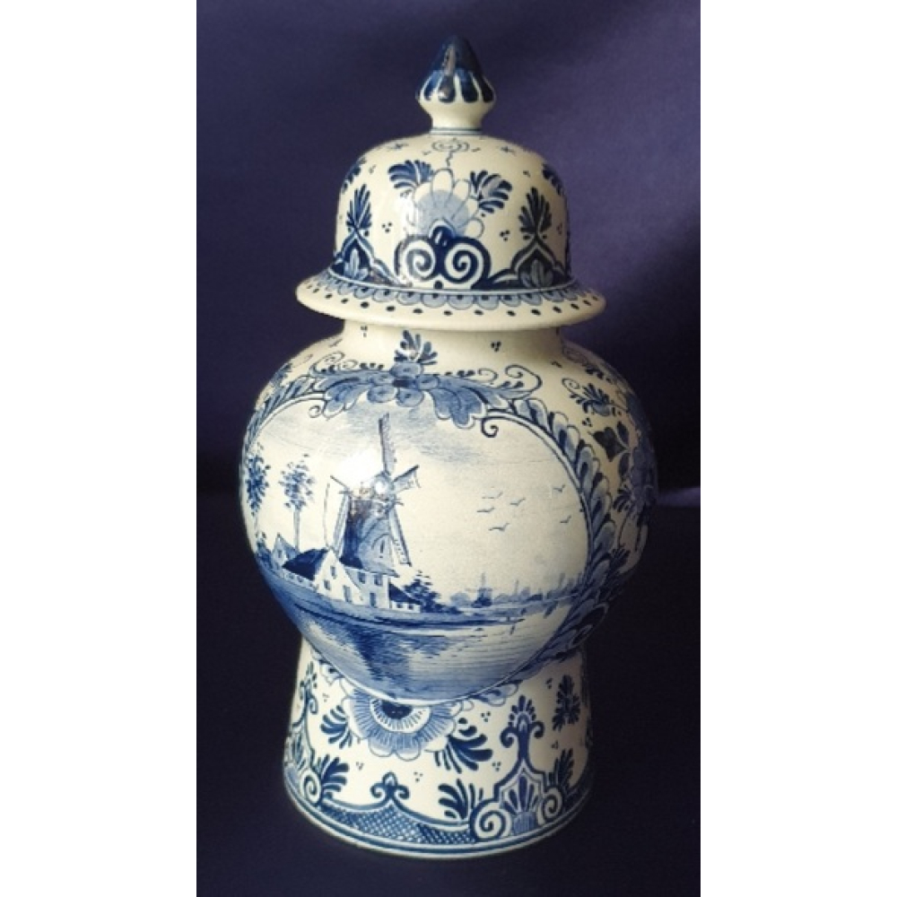 Dekselvaas. Delft Gouda Holland, Gesigneerd en genummerd