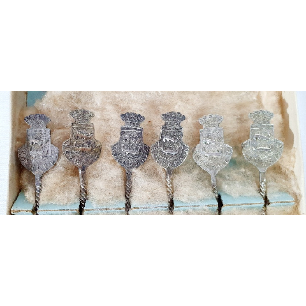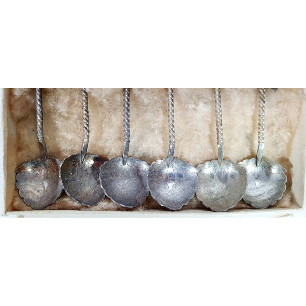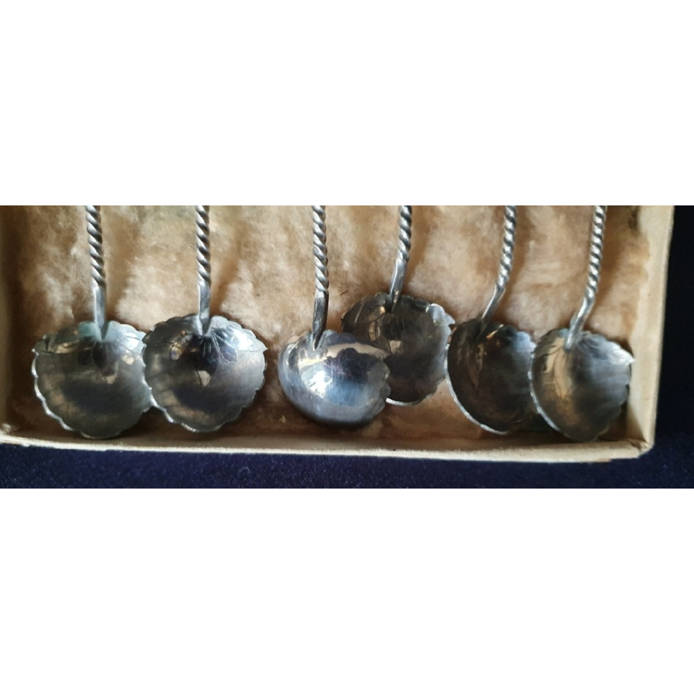 Doosje met 6 zilveren (800) theelepels uitgegeven door de KLM