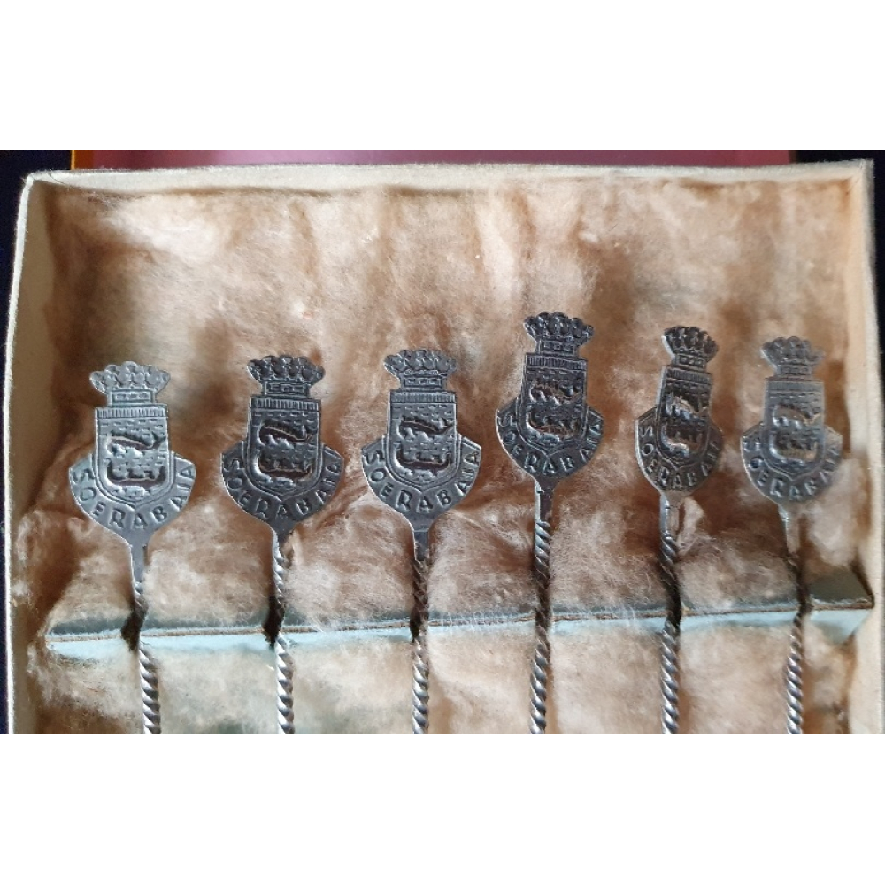 Doosje met 6 zilveren (800) theelepels uit Soerabaja, uitgegeven door de KLM