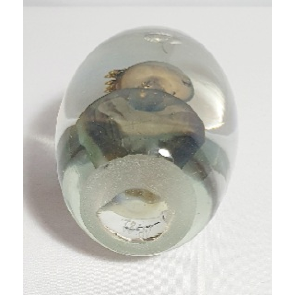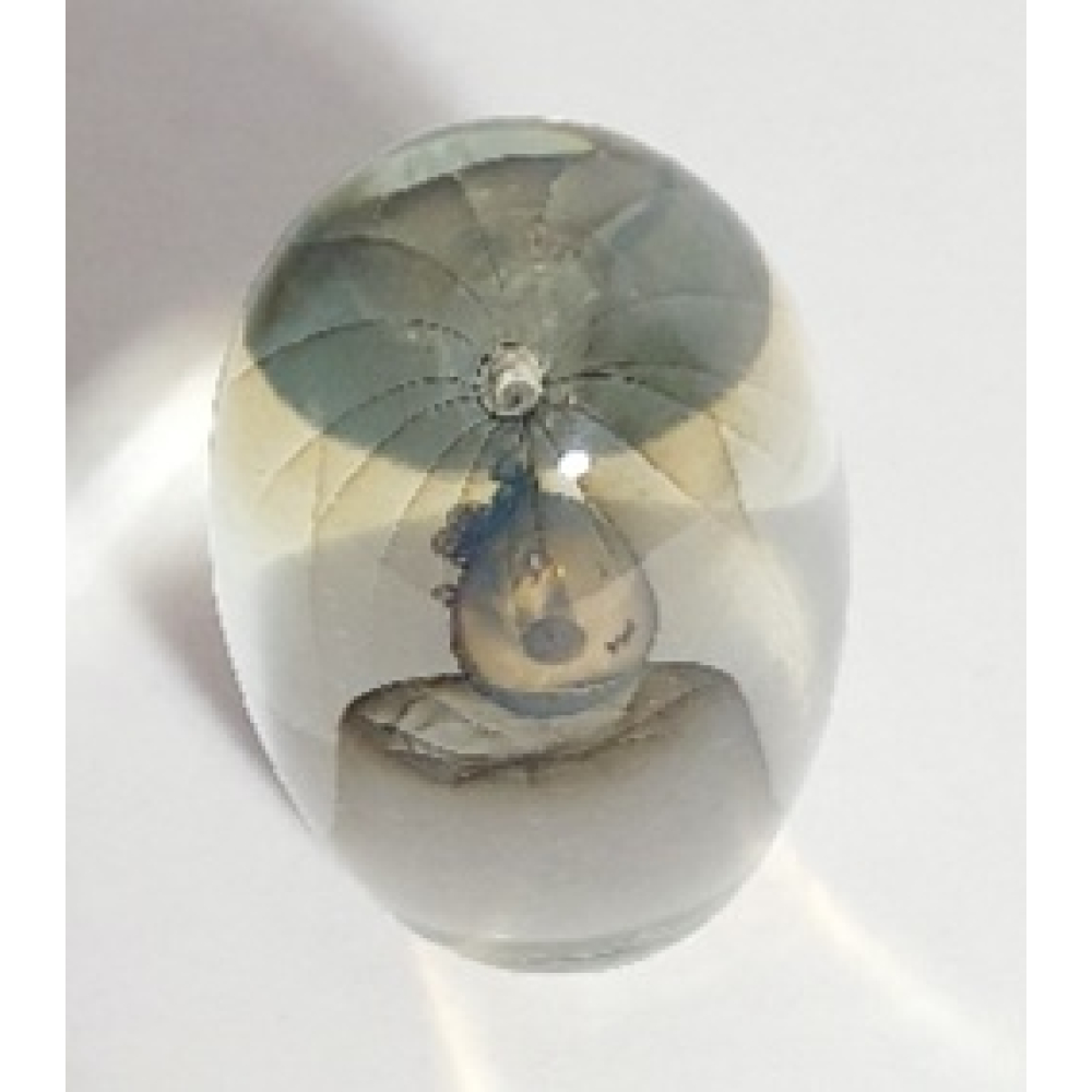Glazen presse-papier, intern gedecoreerd met glaspoeder en luchtbellen.