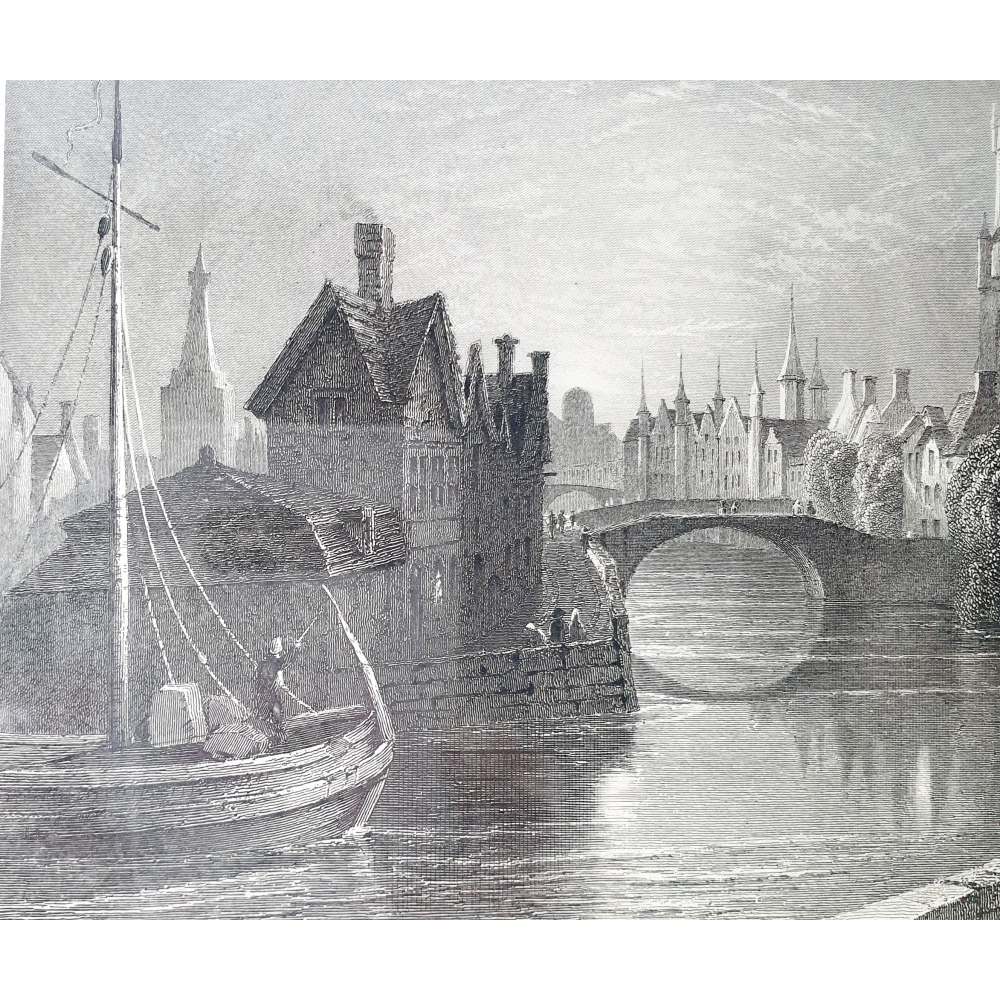 Gravure View of the Canal, Brugge, W.H. Barlett - A.H. Payne