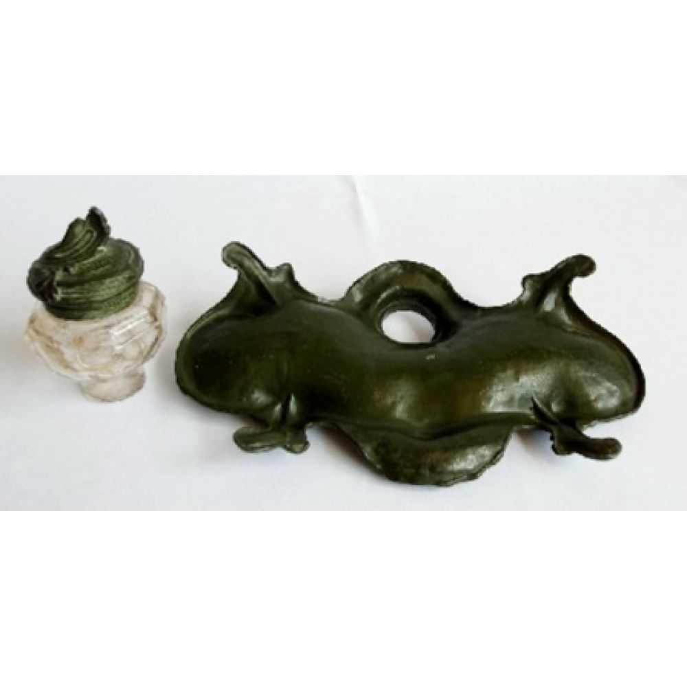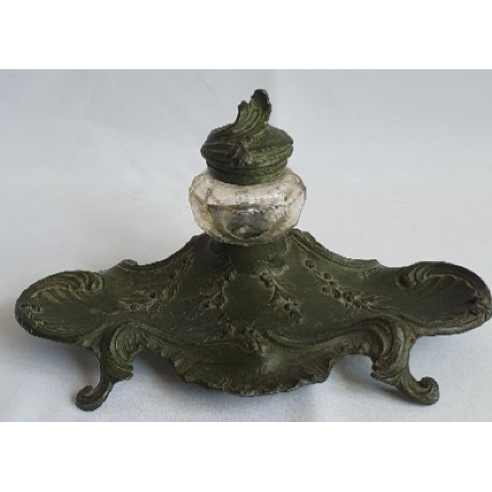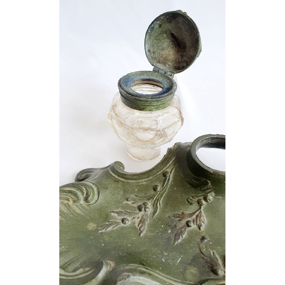 Groen gepatineerde tinnen inktstel