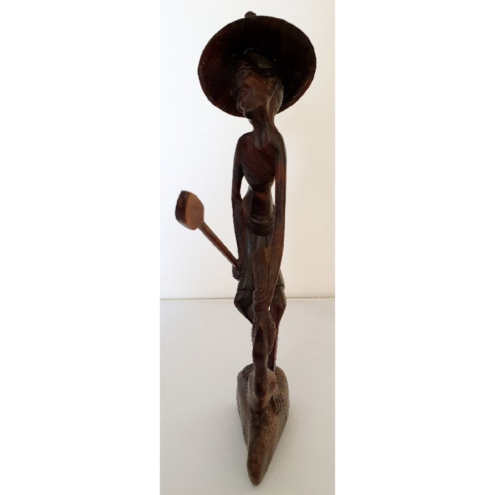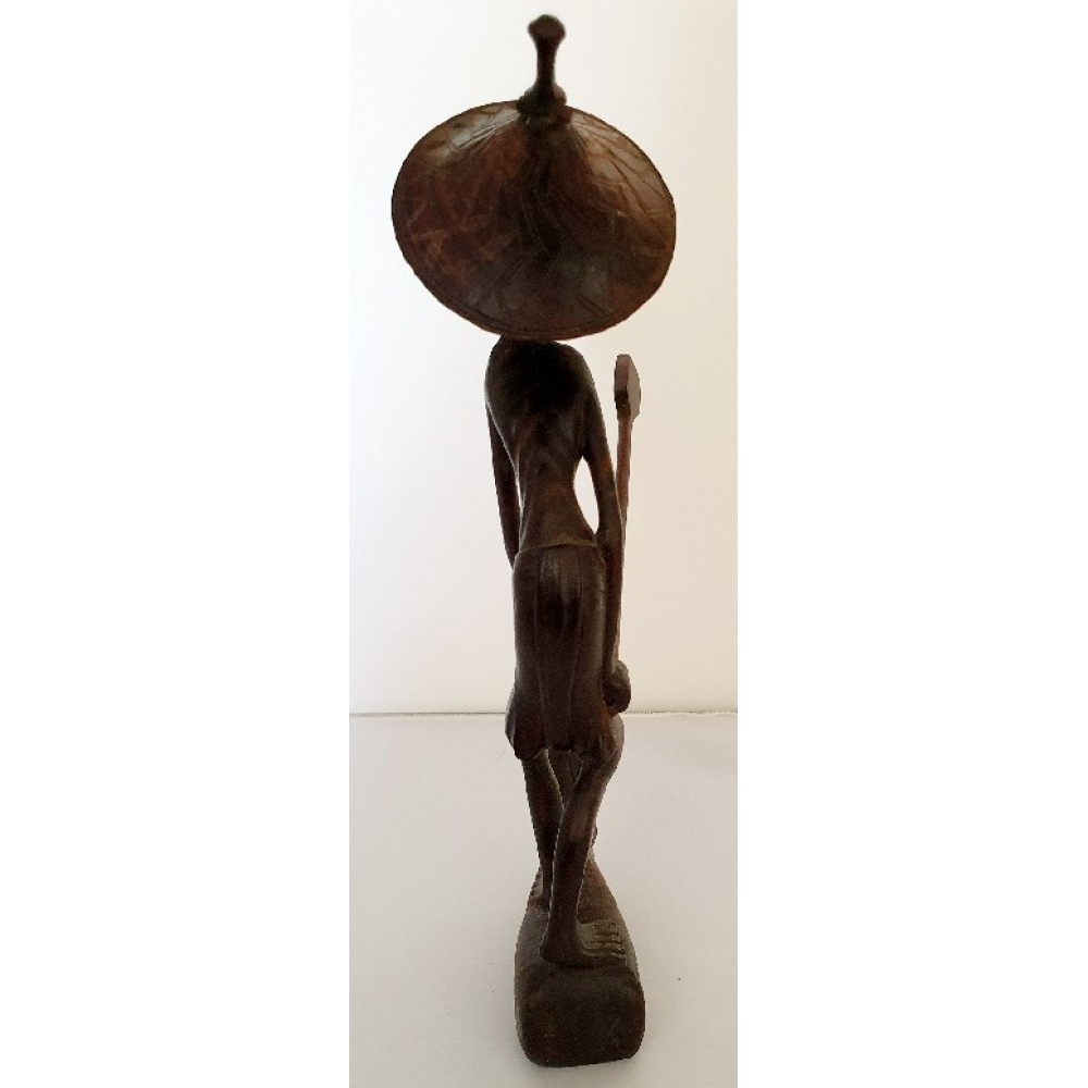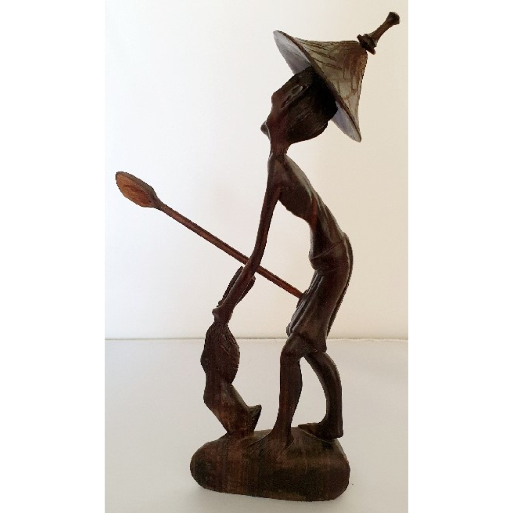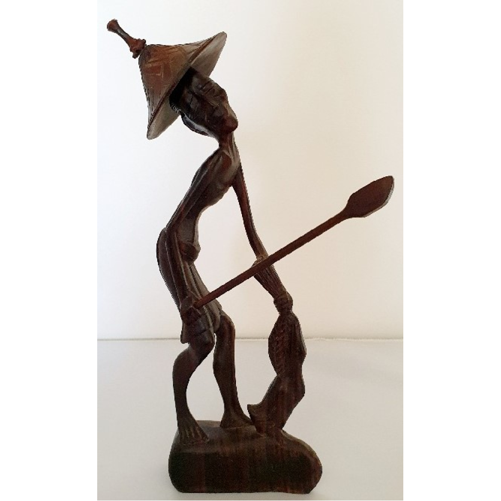 Indonesisch beeldje Visser met losse hoed