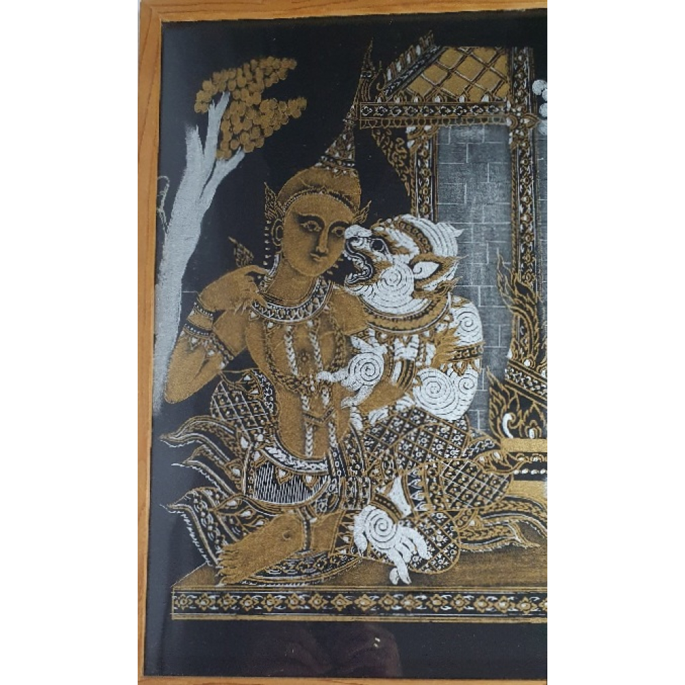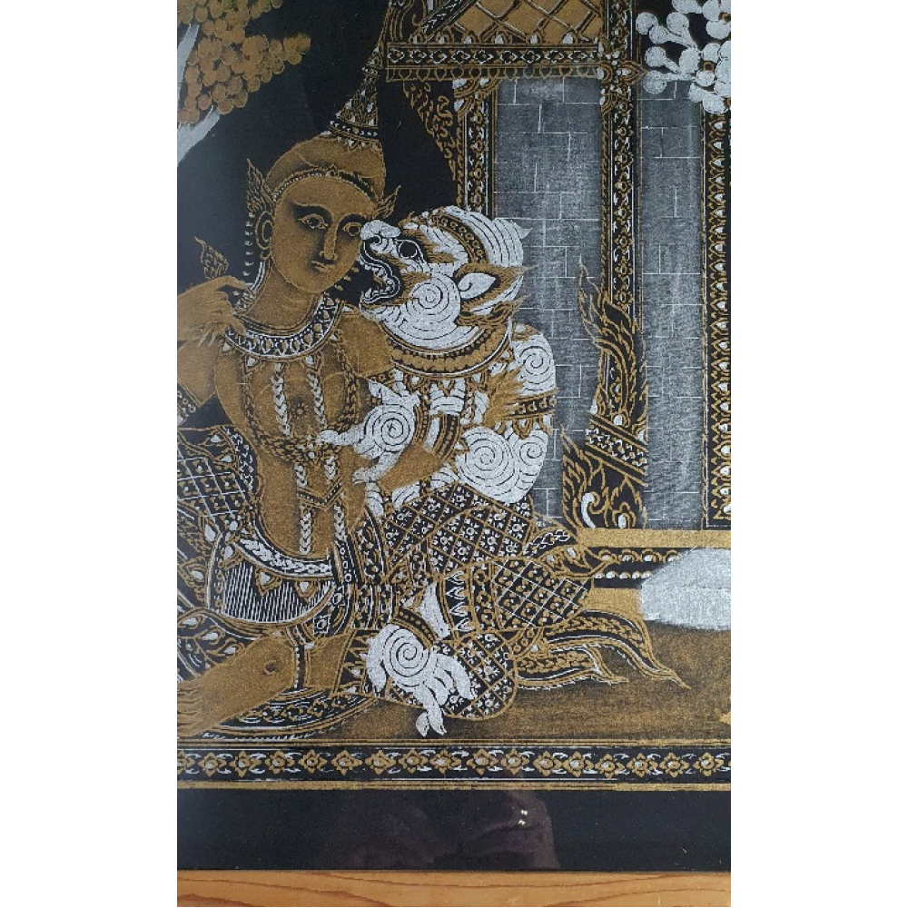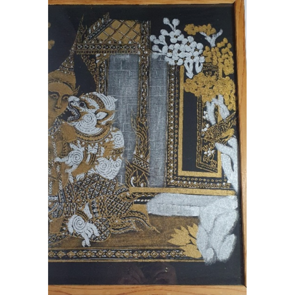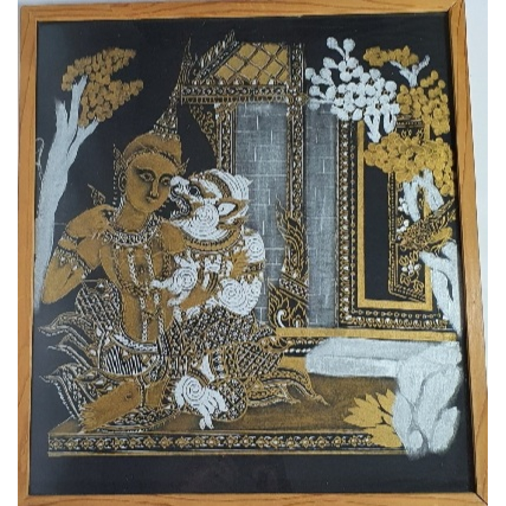 Thaise Godenvoorstelling in zilver met goud kleur op zwarte achtergrond