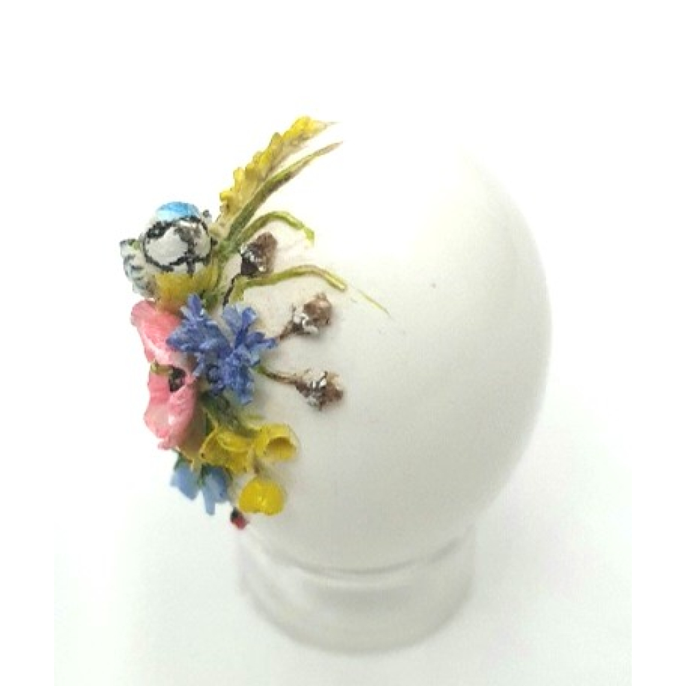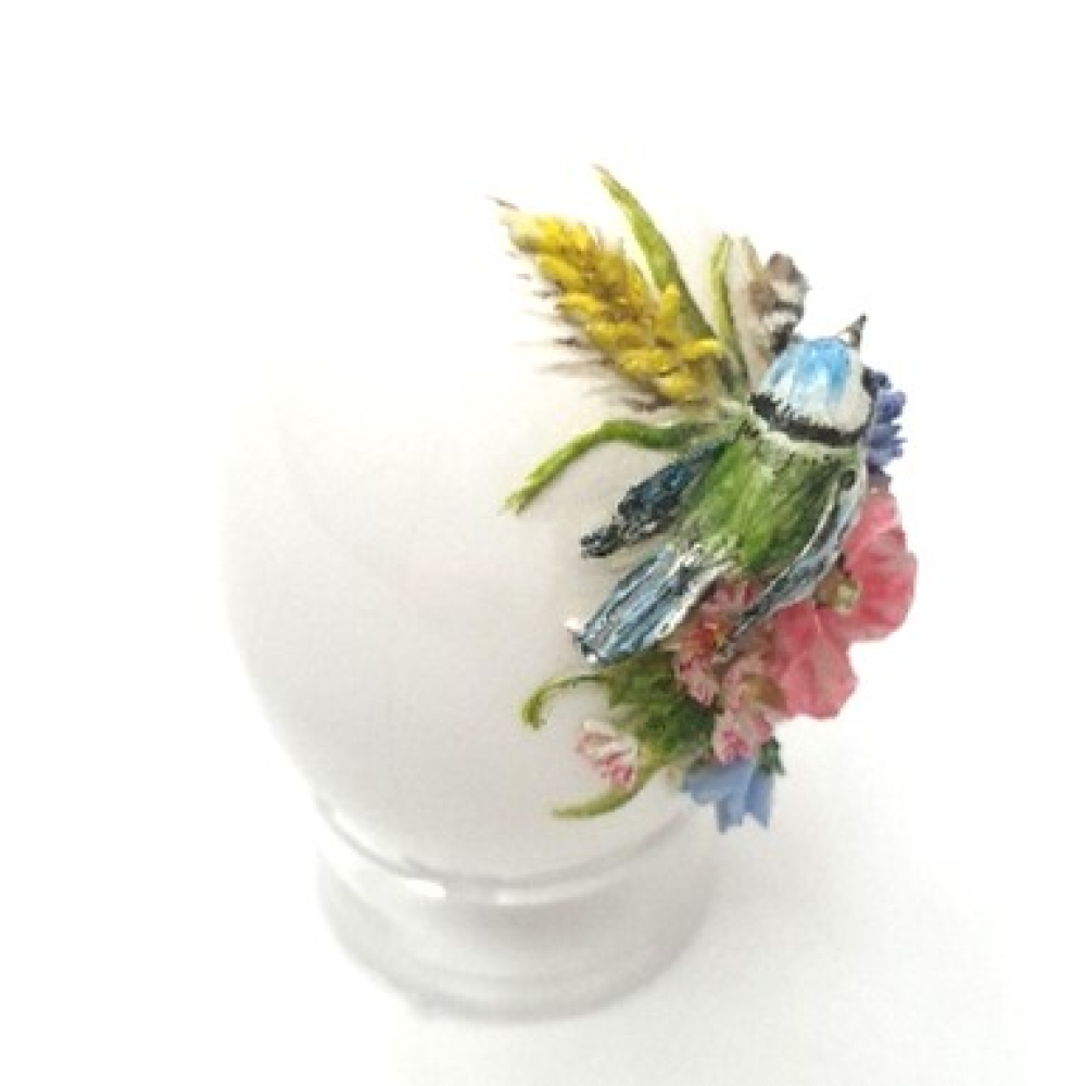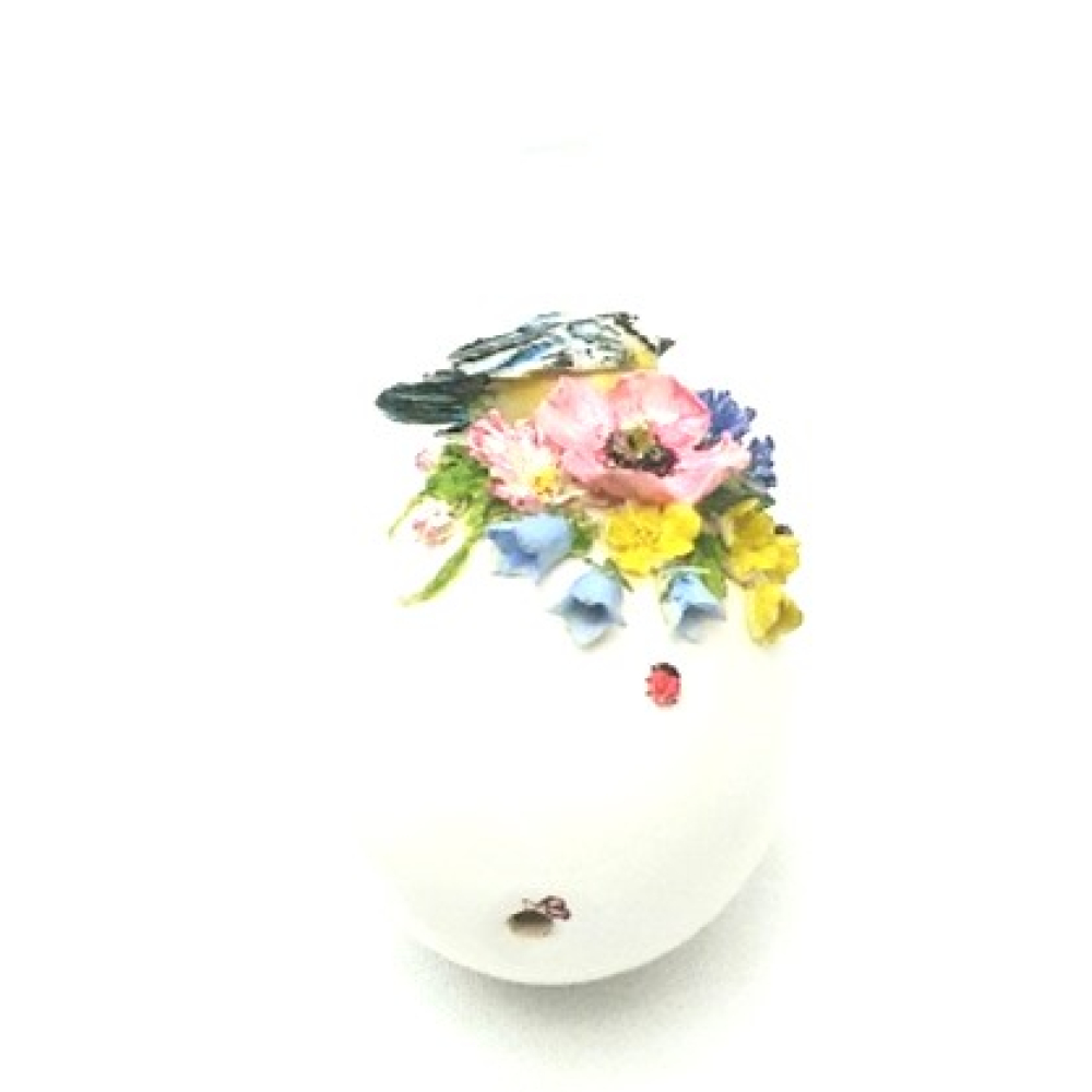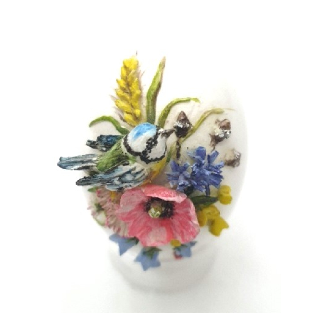 Klein porselein eitje met een prachtig vogeltje en bloemetjes