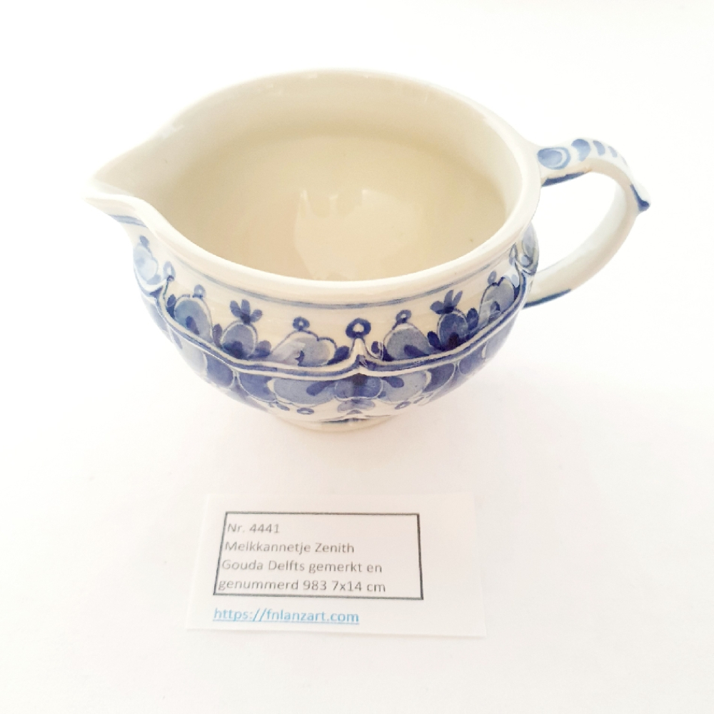 Melkkannetje Zenith Gouda Delfts, gemerkt en genummerd en gesigneerd