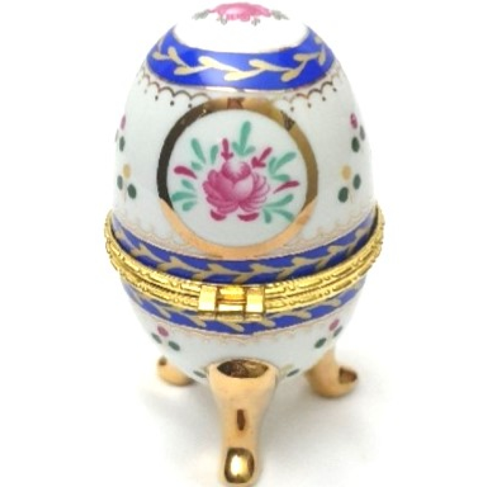 Porseleinen ei, blauw met wit en goud kleur