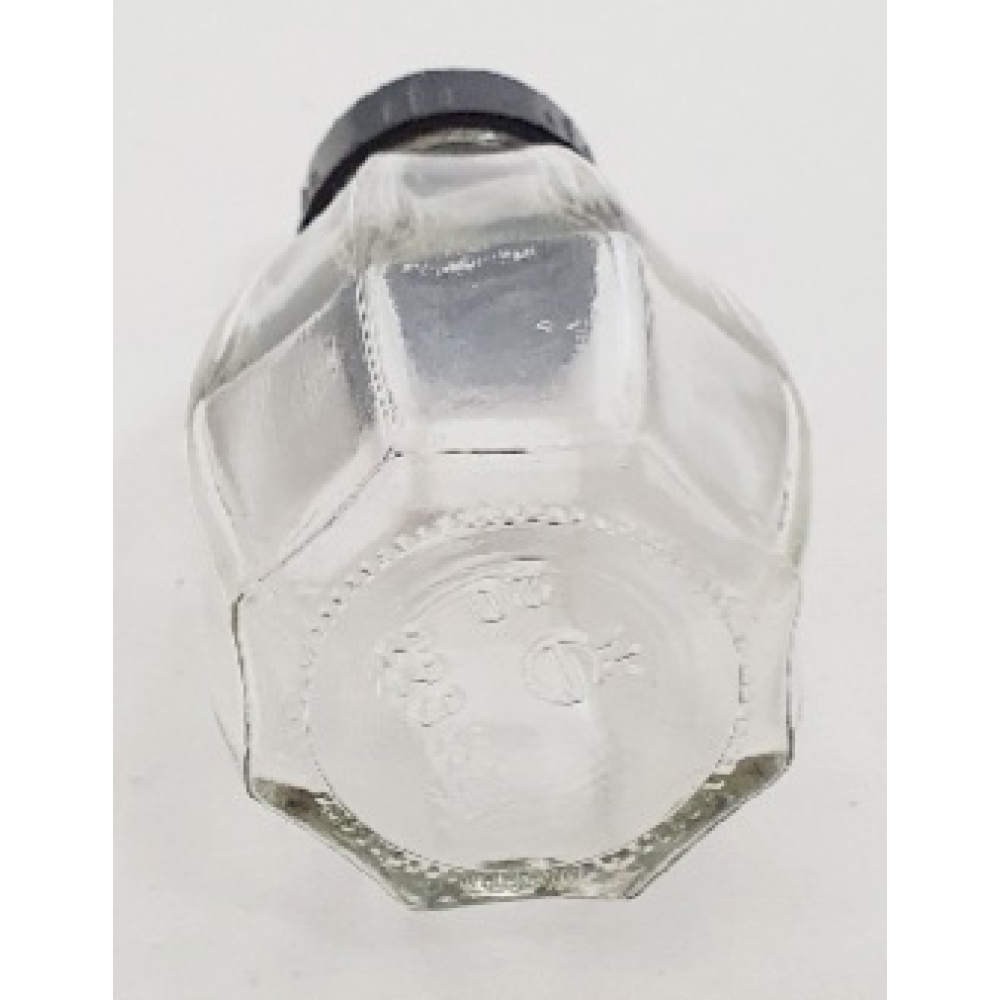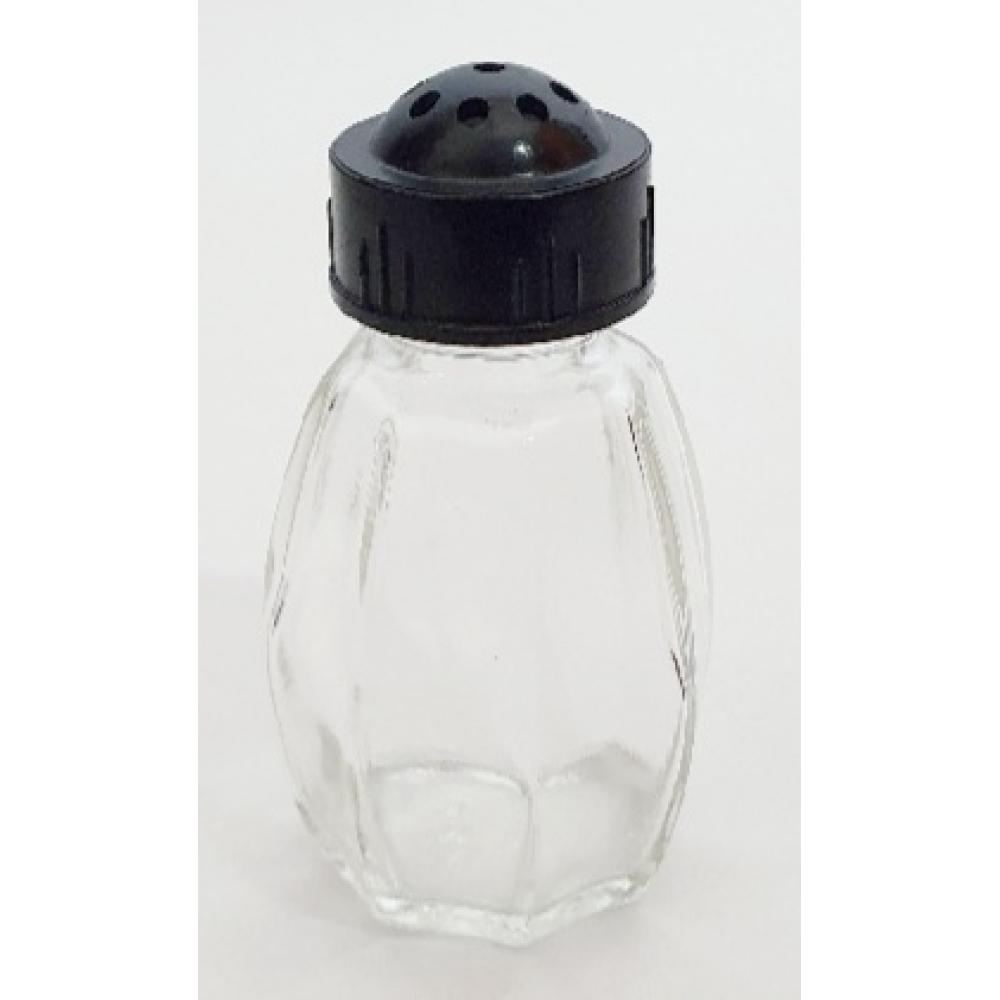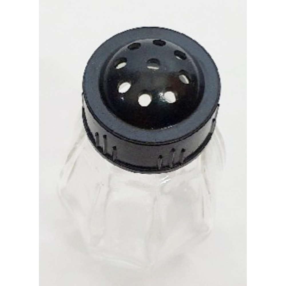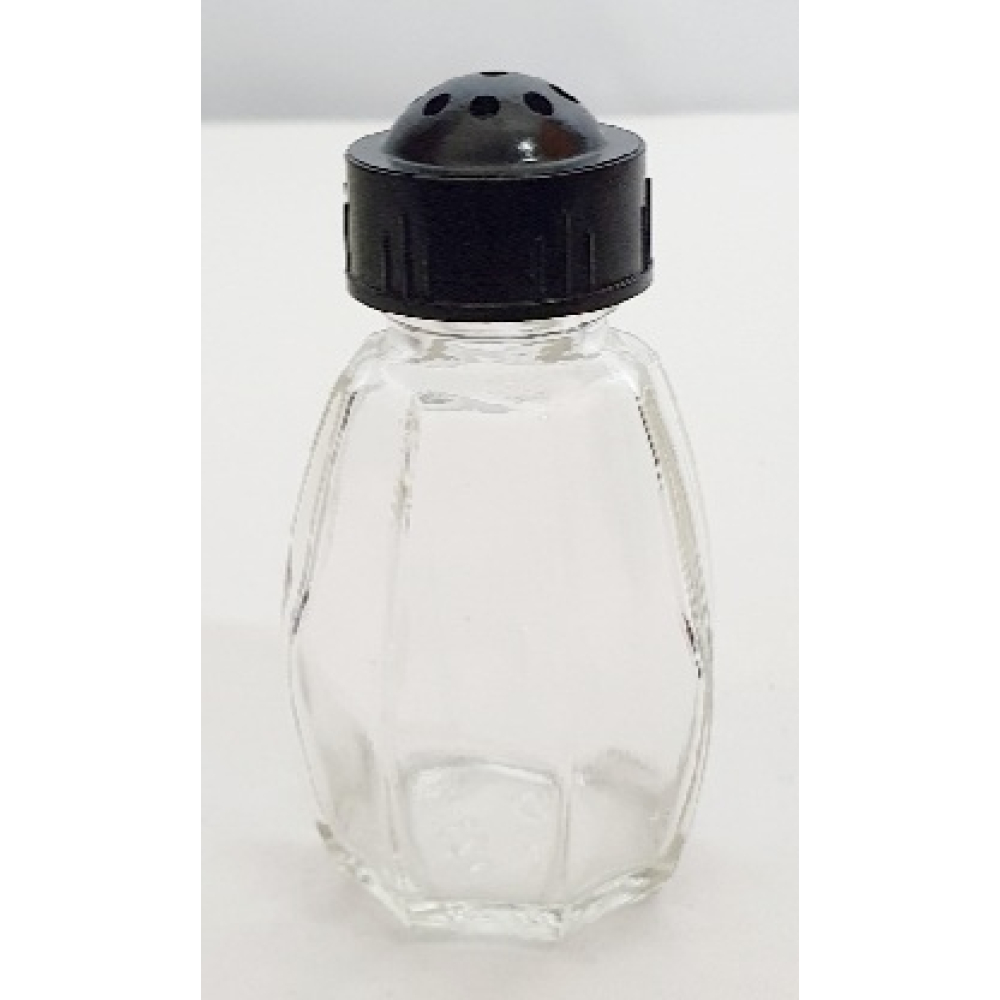 Vintage glazen zoutstrooier met zwarte kunststof dop
