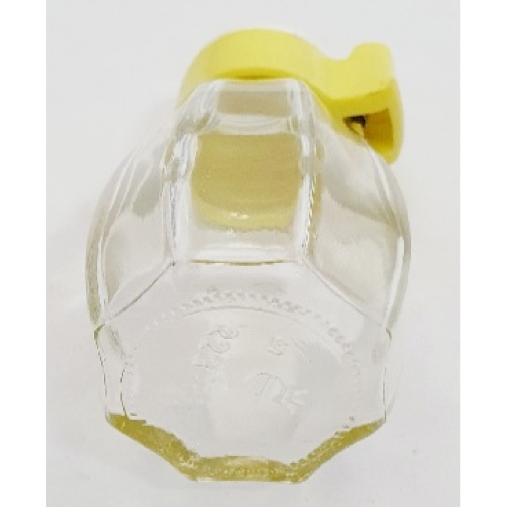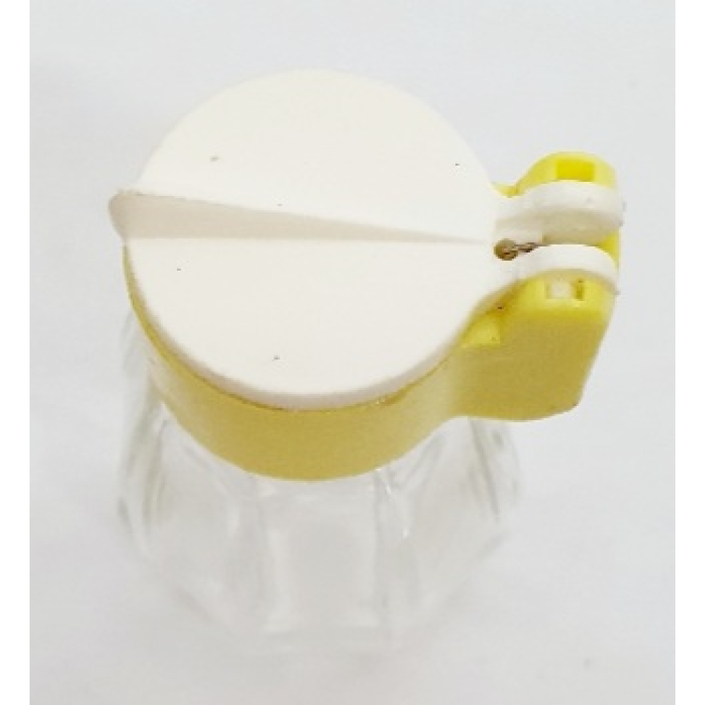 Vintage glazen zoutstrooier met geel en witte kunststof klepdop