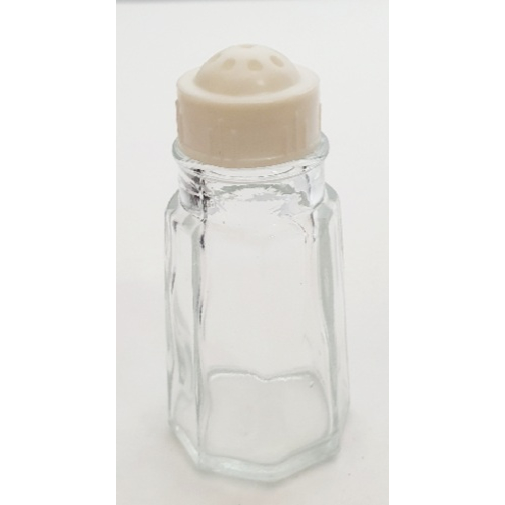 Vintage glazen zoutstrooier met witte kunststof dop
