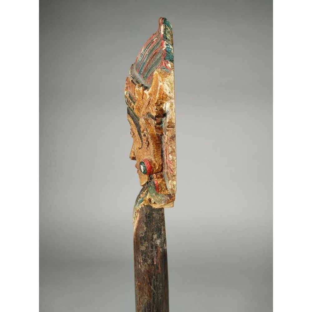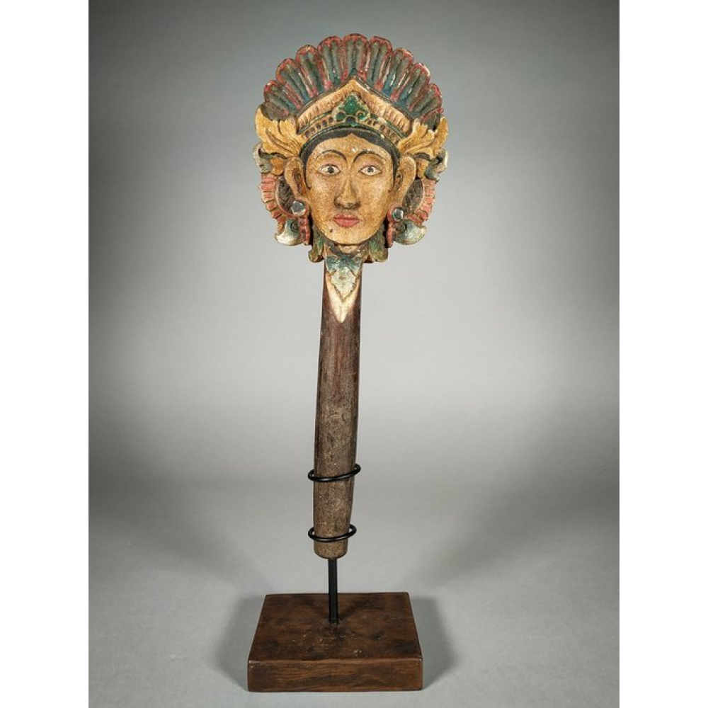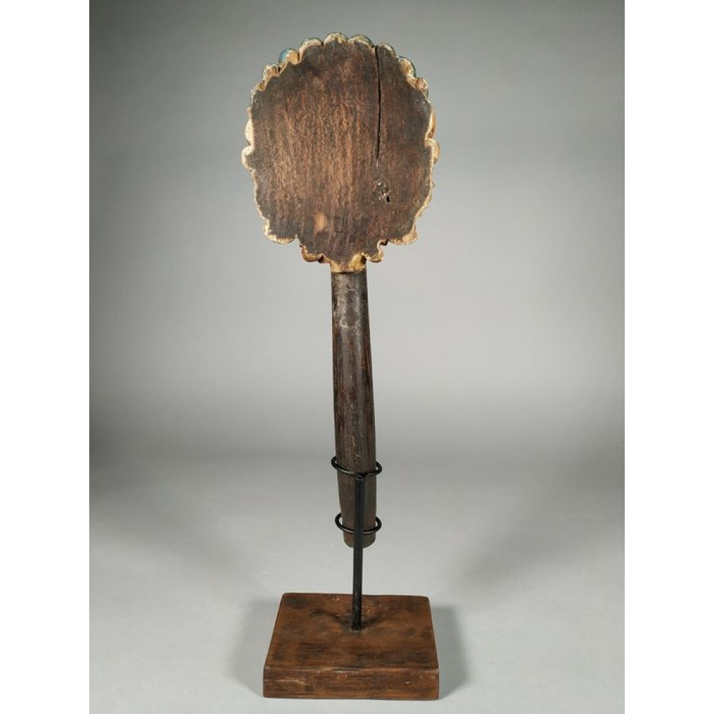 Votief masker uit Indonesië, gemonteerd op hardhouten sokkel