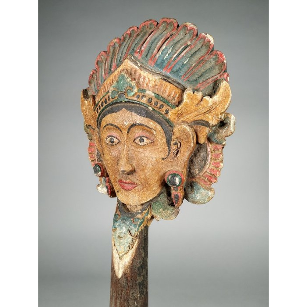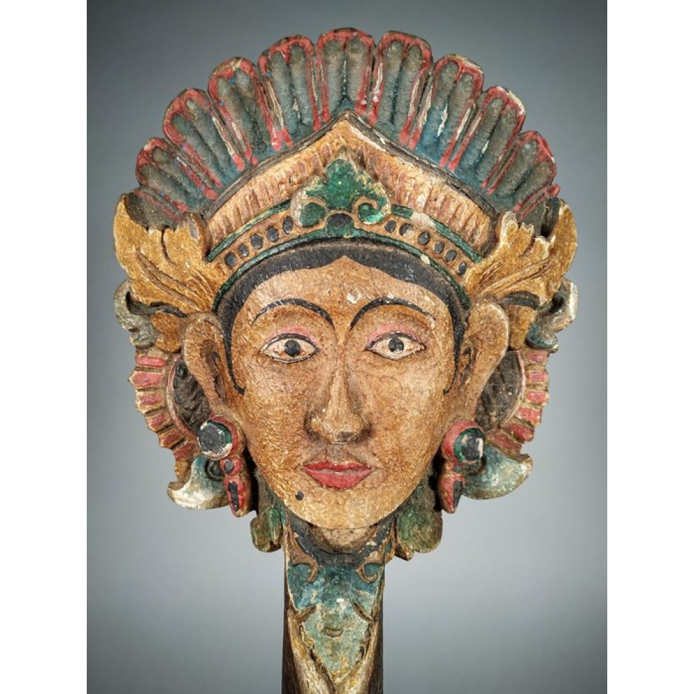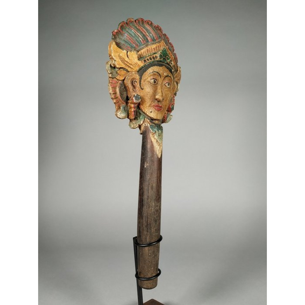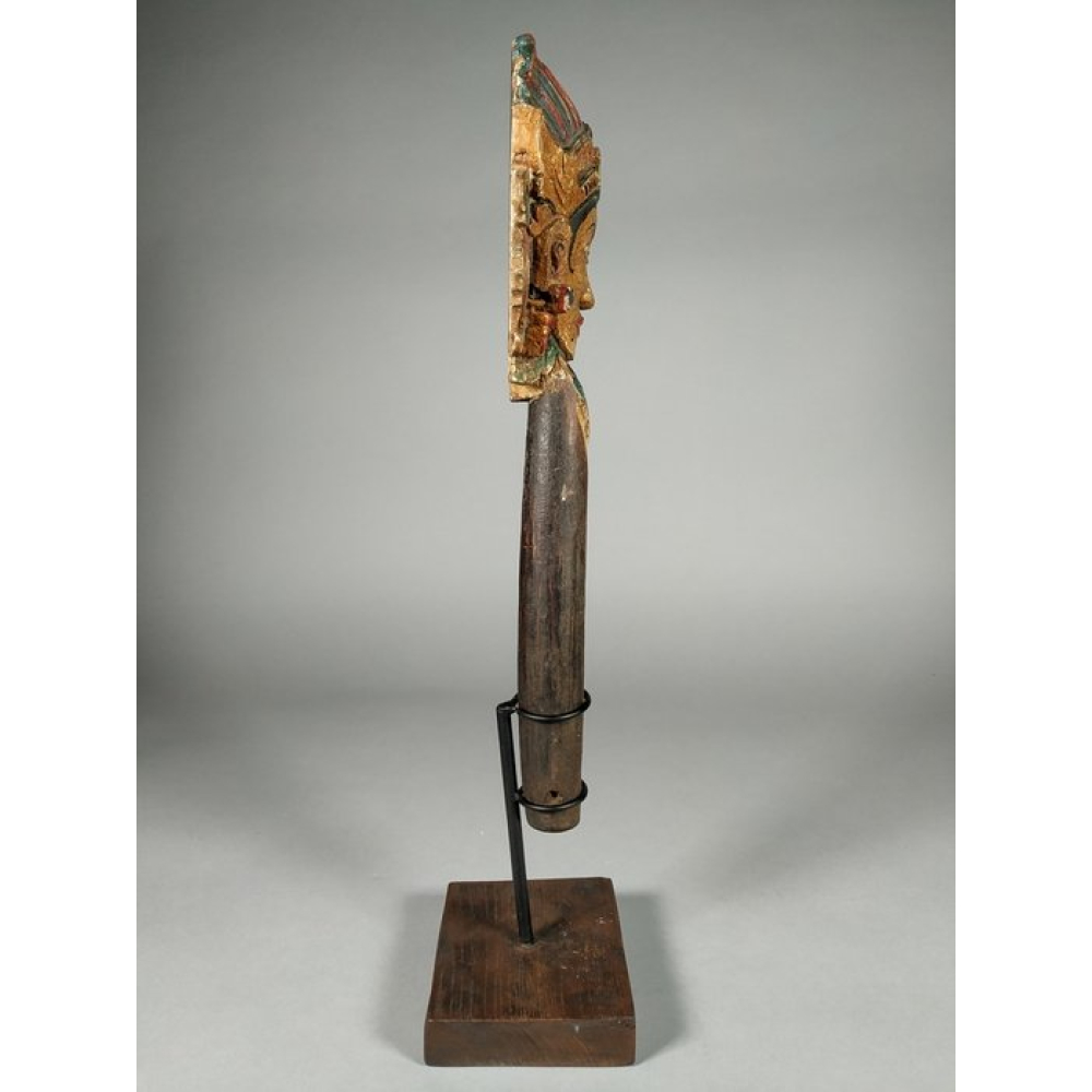 Votief masker uit Indonesië, gemonteerd op hardhouten sokkel