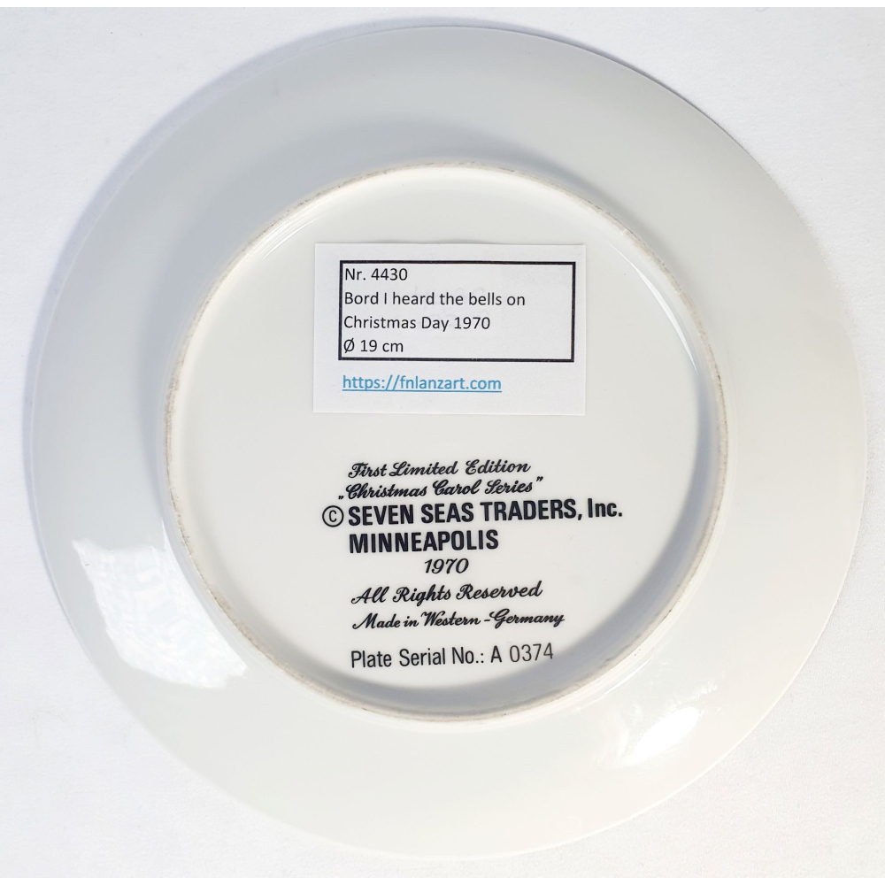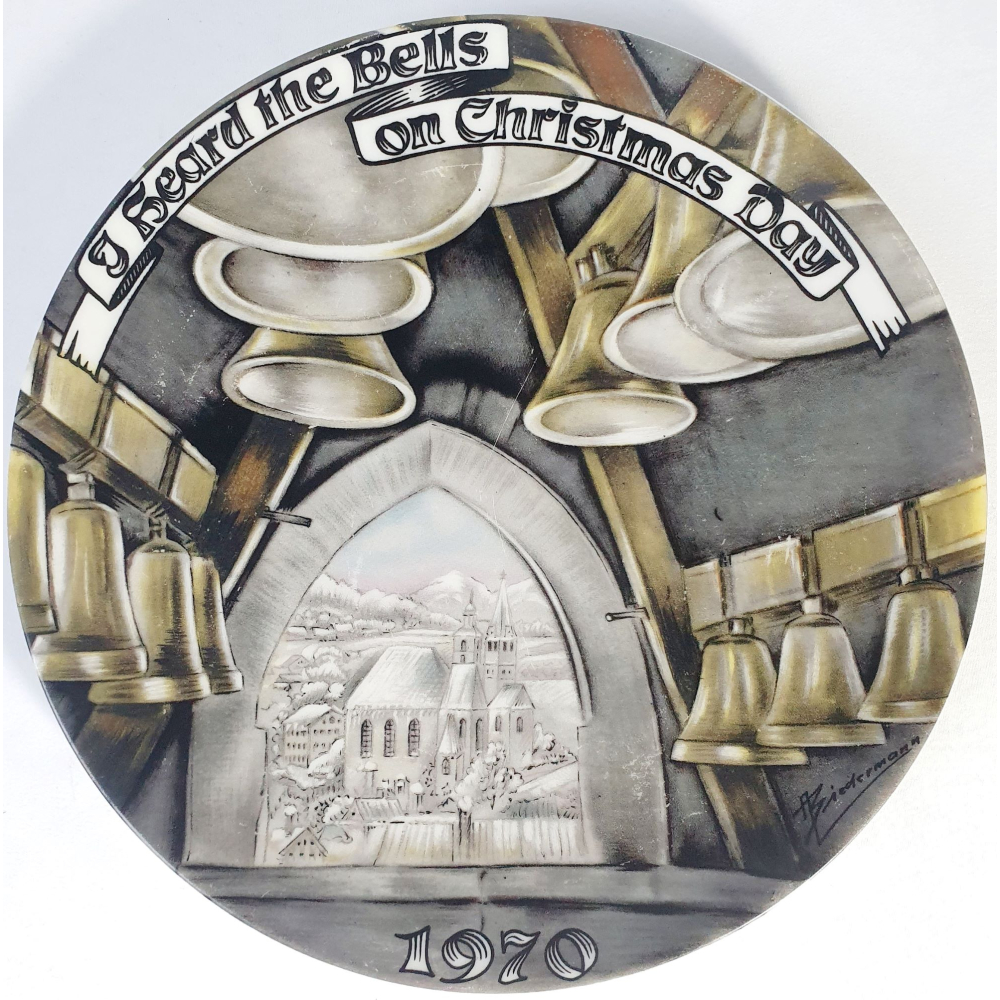 Wandbord "I heard the bells on Christmas Day" 1970. Doorsnede 19 cm