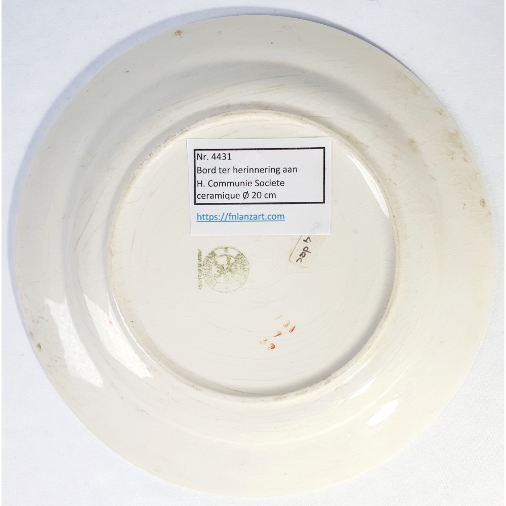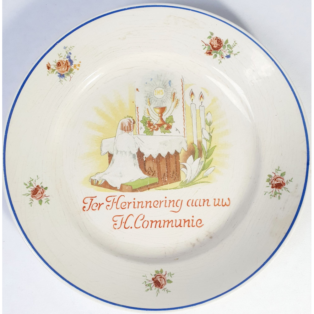 Wandbord ter herinnering aan Heilige Communie, gemerkt. Doorsnede 20 cm