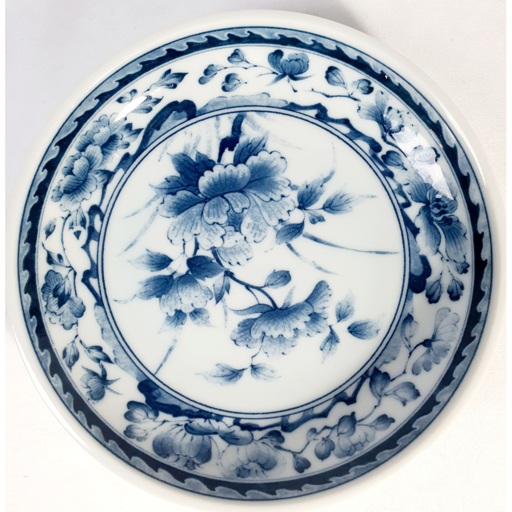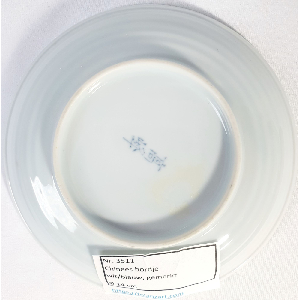 Japans wit/blauw wandbordje. Doorsnede 14 cm